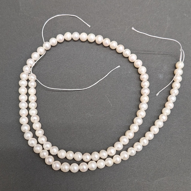 淡水パール4mmラウンド1連です。 小粒ですが艶、照りともに良いものが含まれます。 写真は現物ですのでご購入前によくご確認ください。 1連:約39センチ 85個程度 粒のサイズ:4mm~4.3mm 【ご購入前にご確認ください】 天然石ビーズは、自然の産物ならではの個性が魅力です。ご理解いただいた上でのご購入をお願いいたします。 天然素材の特性について 同じ種類でも、色味・模様・形状に個体差がございます。また、天然特有のクラック(ひび)や内包物、微細な凹凸が含まれる場合があります。ひとつひとつ異なる石の表情をお楽しみください。 サイズ・形状の個体差 表記サイズは目安です。1粒ごとの大きさや厚み、形状に若干のバラつきがございます。 商品画像について 照明やモニター環境により、実際の色合いと多少異なって見える場合がございます。 連売り・セット内容について 連売りの特性上、割れ・欠けのある粒が含まれる場合や、粒数に若干の前後が生じることがございます。
