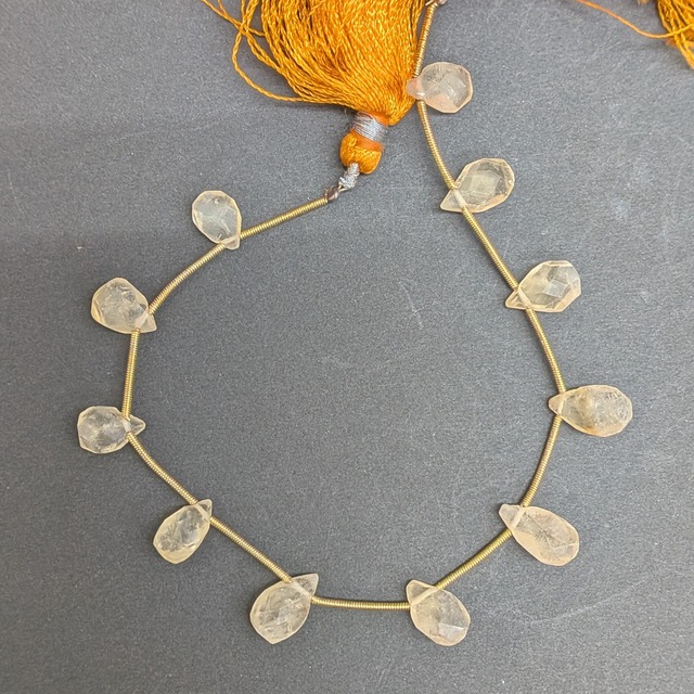 天然石ビーズ:インド産レモンクォーツ ティアドロップカット 11粒