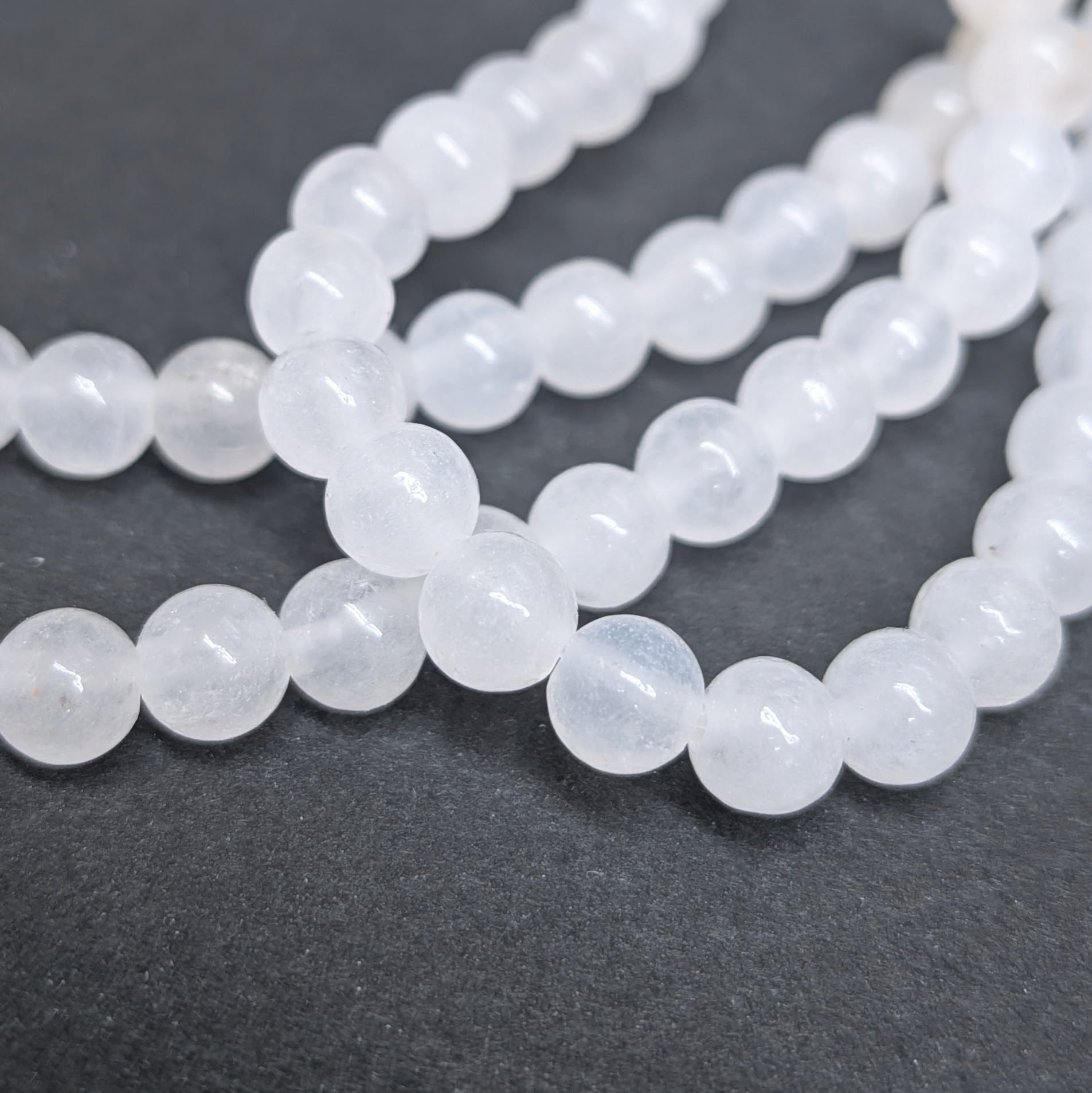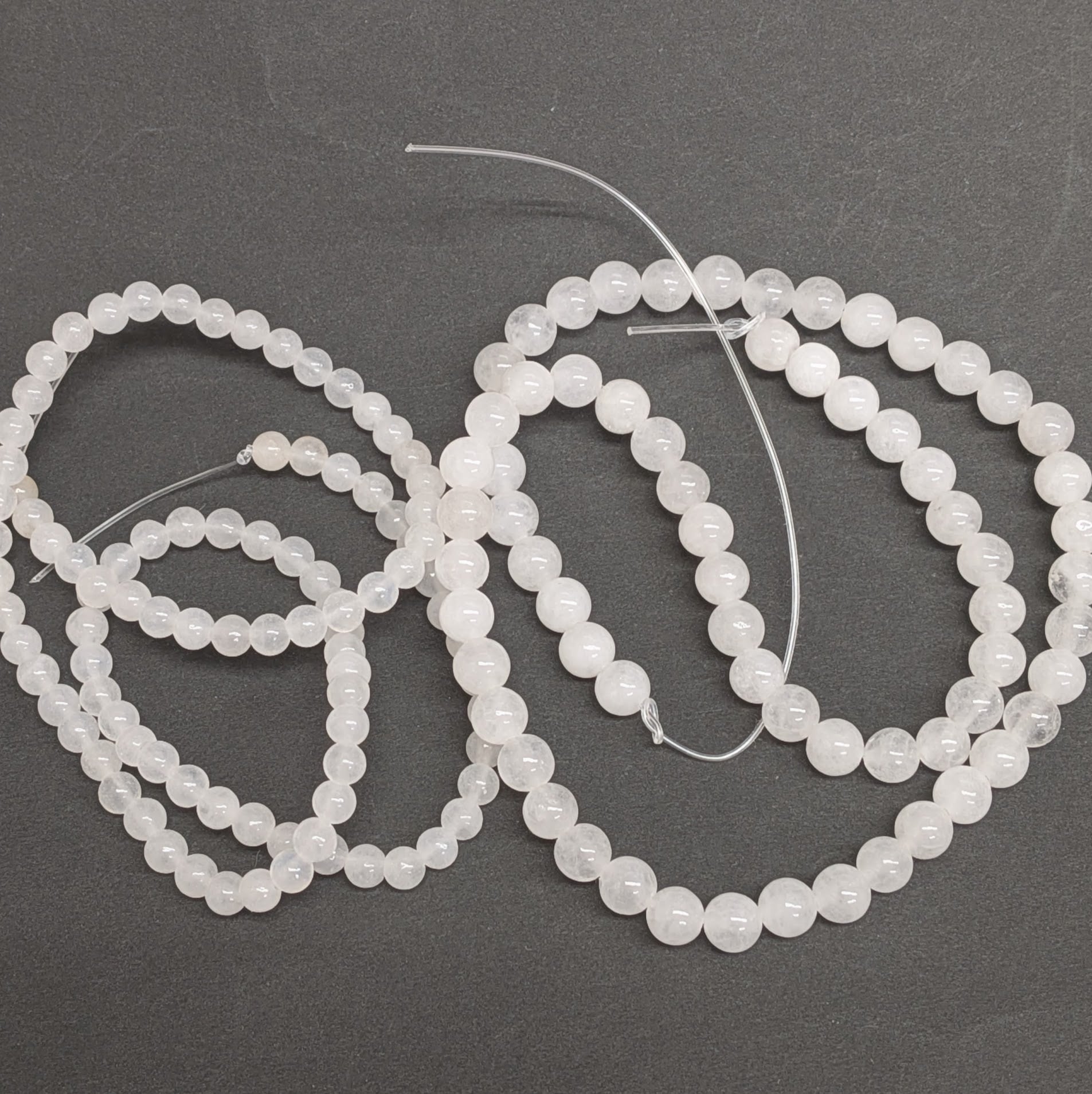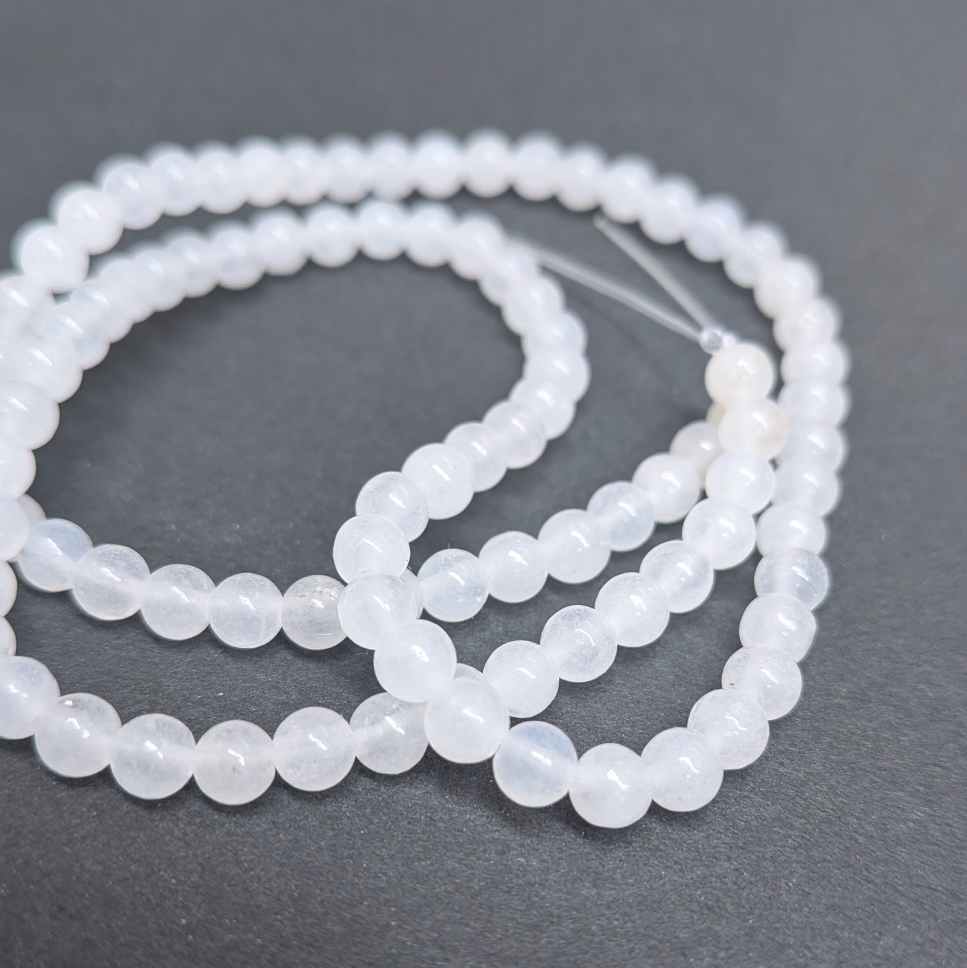天然石ビーズ:ホワイトジェイド4mm・6mm2連セット
