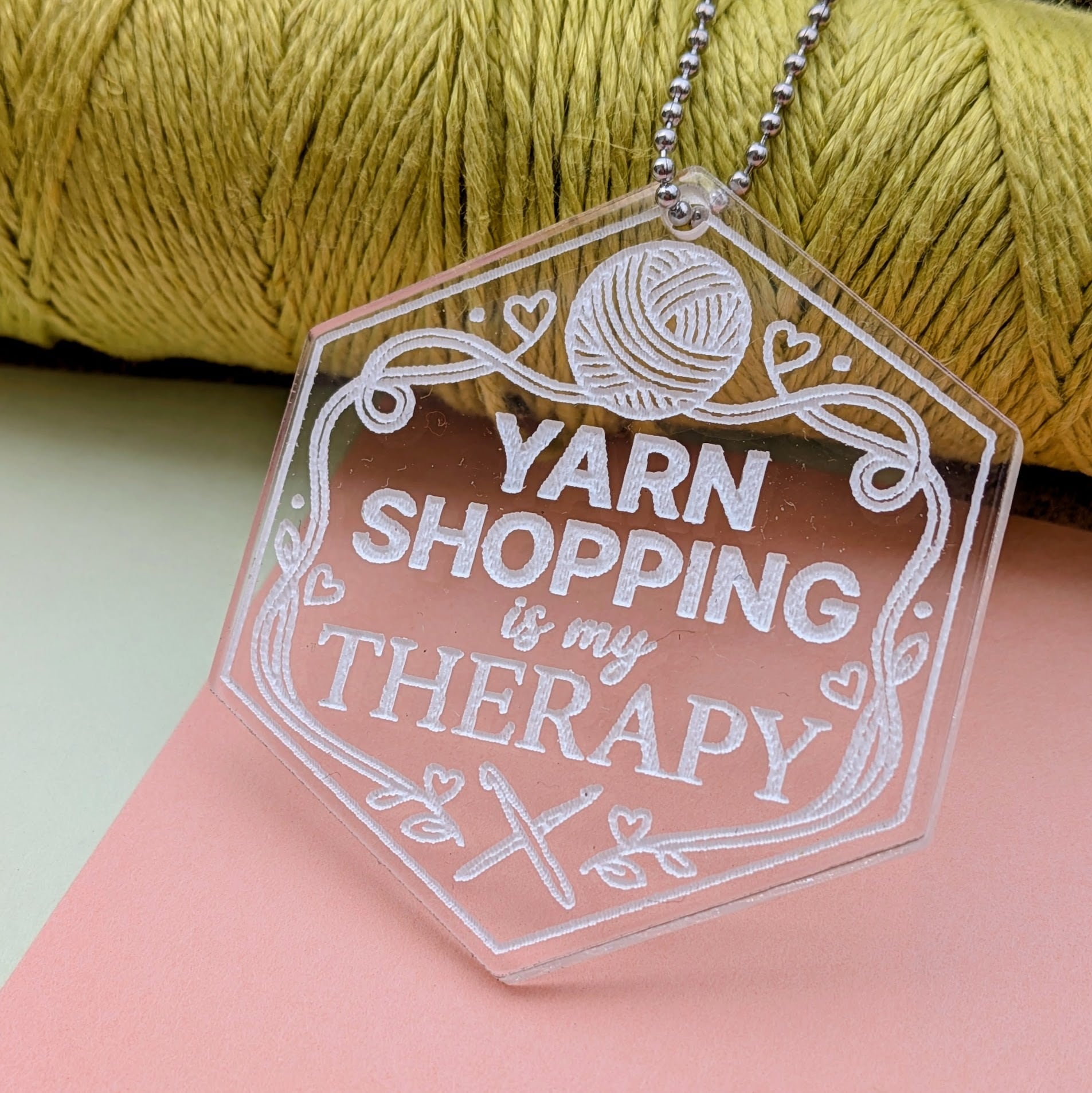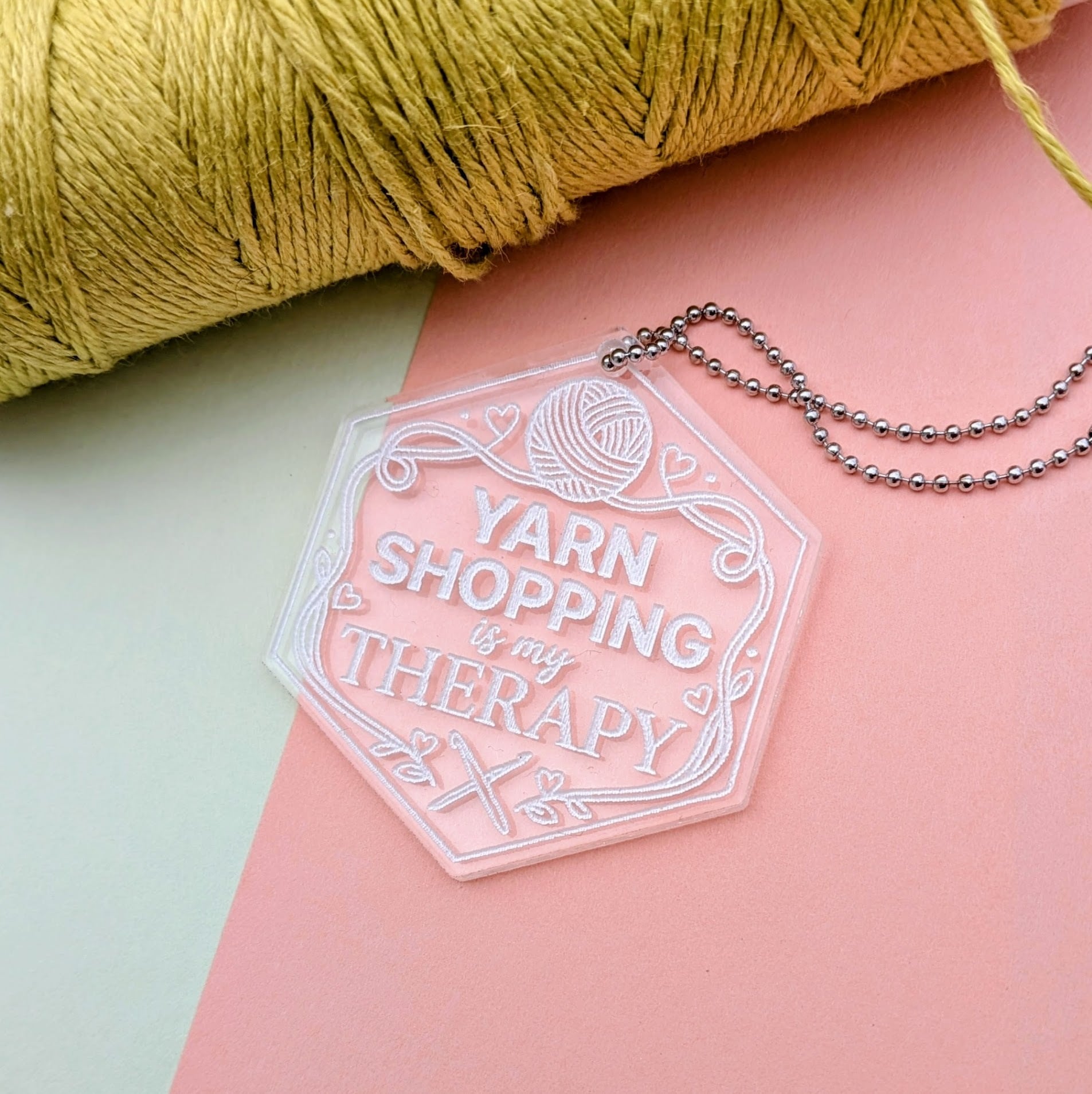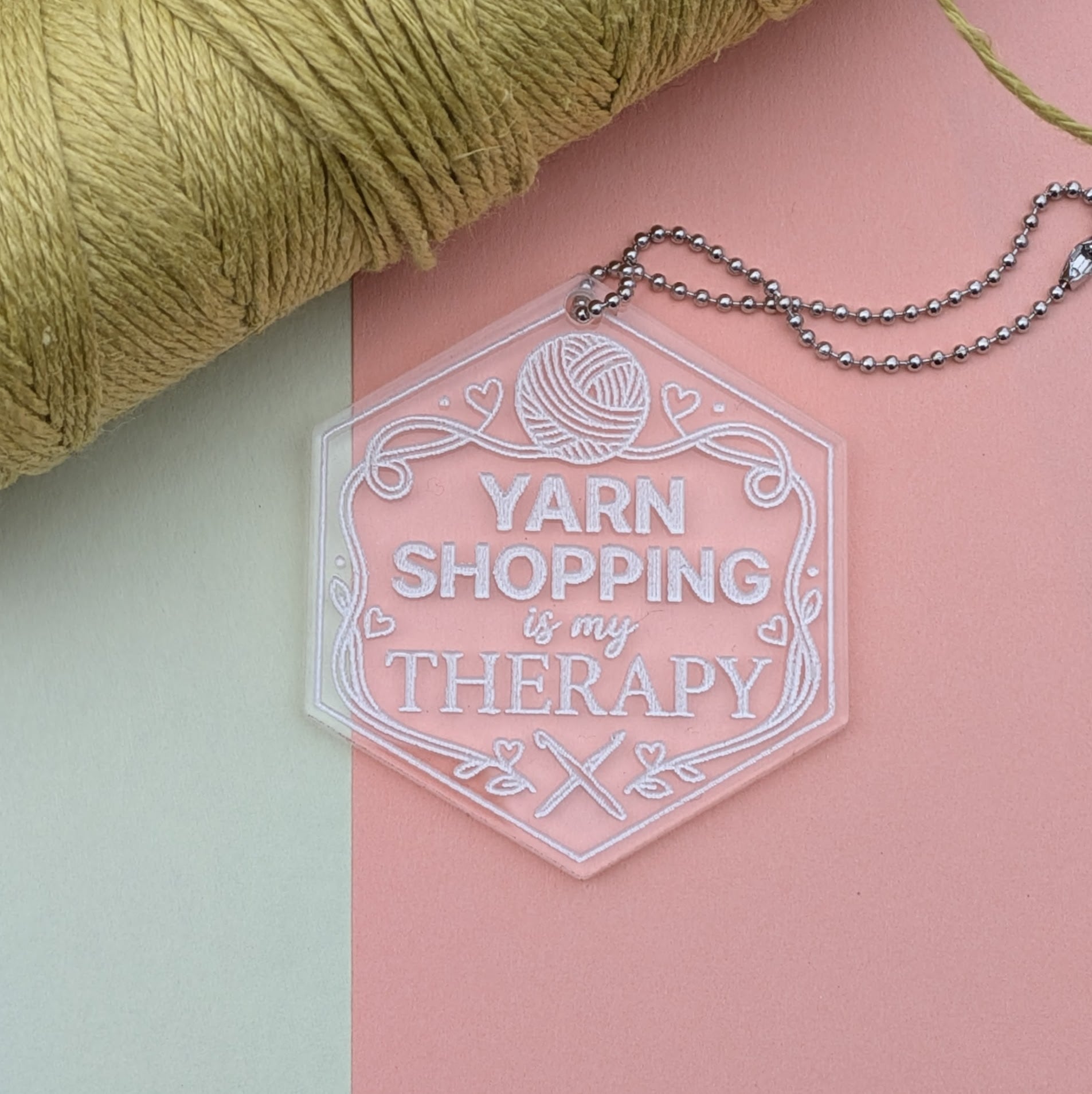 「毛糸ショッピングは私のセラピー」アクリルキーホルダー