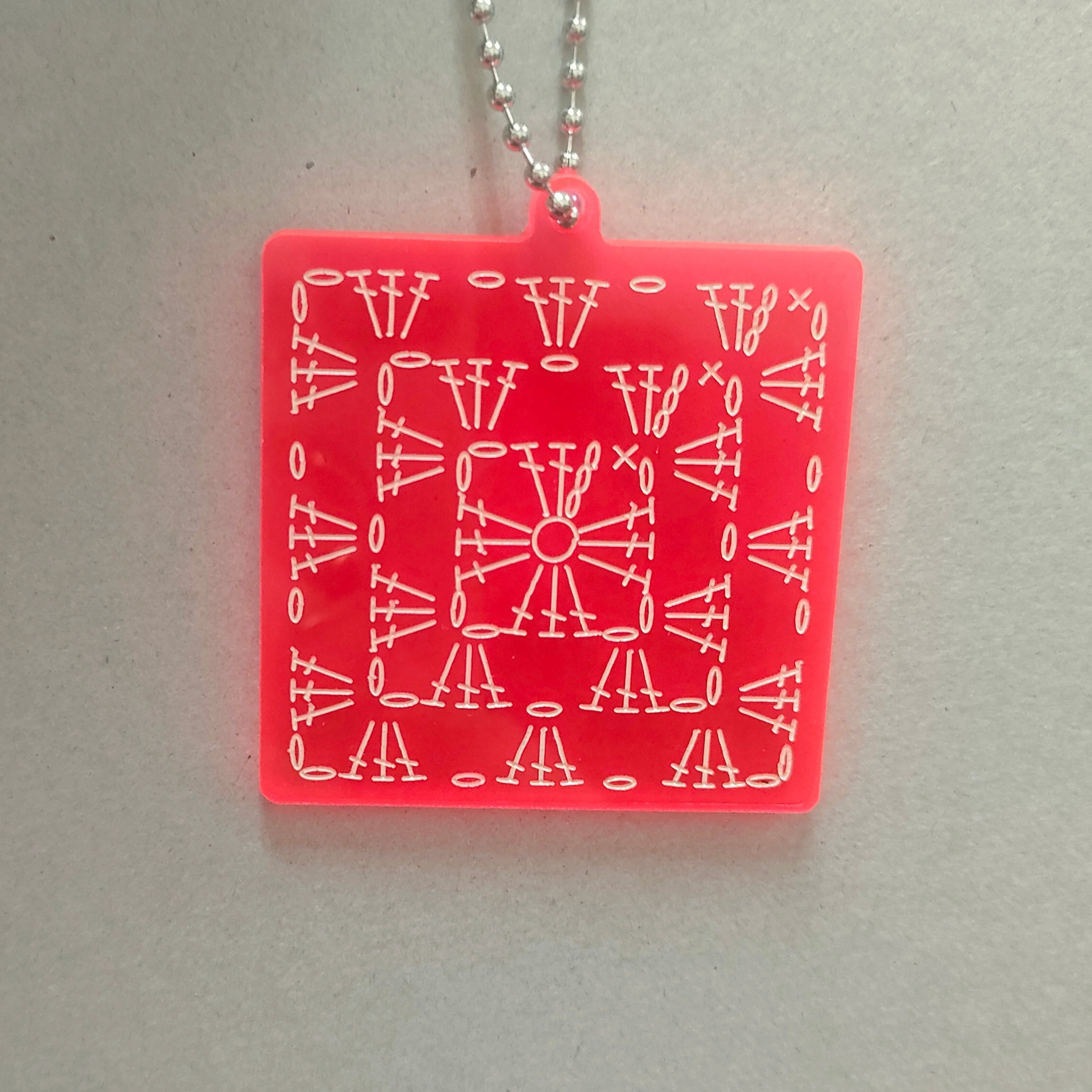 グラニースクエアモチーフの編み図をアクリルキーホルダーにしました。